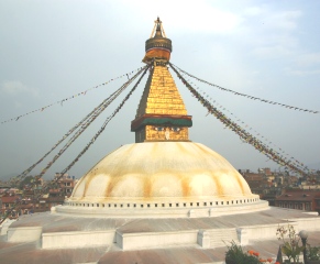 One of the oldest and the biggest Buddhist monuments ever built in Nepal,Bouddhanath is an imposing structure standing some 36 meters. The Stupa stands on the massive three level Mandala style platform surrounded by colorful private family houses. The basic feature of this great stupa is very much like those of Swayambhunathstupa except its finial displaying. It is much bigger than SwayambhunathStupa and lies on the valley floor where s former one stands on the hilltop. This stupa is said to have been built in 5th century AD.